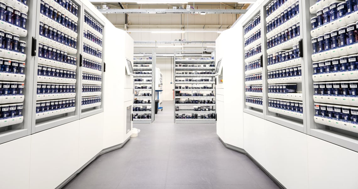 Grote machines, computerprogramma`s, geconcentreerde medewerkers in witte jassen en duizenden pillen in donkerbruine bakjes.